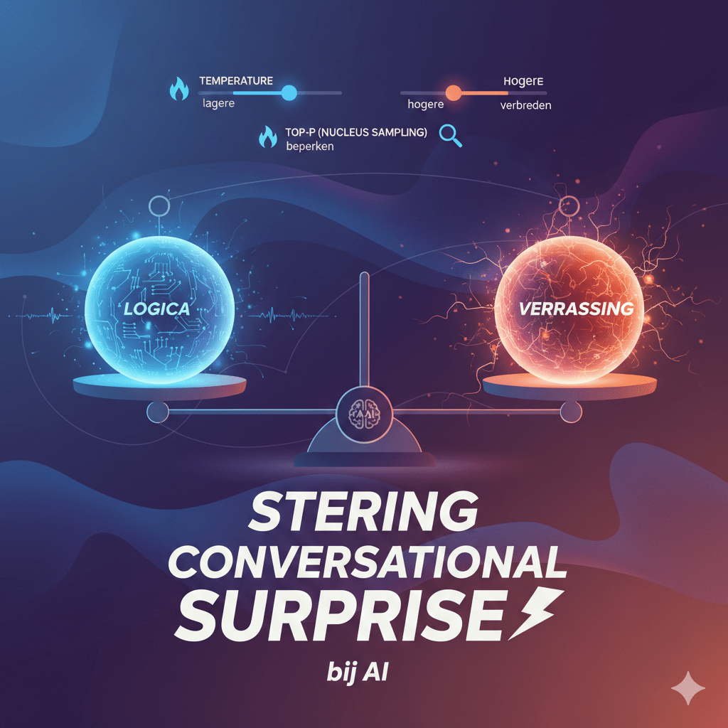Dit beperken of verbreden van de selectie beïnvloedt direct hoe “gedurfd” de AI is in haar woordkeuzes. Een lagere Top-P waarde (bijv. 0.5) dwingt het model om uit een kleinere, meer voorspelbare set tokens te kiezen, terwijl een hogere waarde (0.9-1.0) meer diversiteit toestaat.